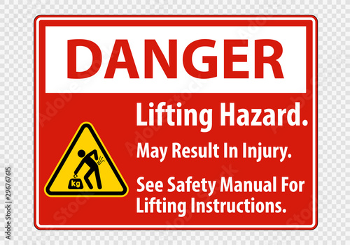 Lifting Hazard,May Result In Injury, See Safety Manual For Lifting Instructions Symbol Sign Isolate on transparent Background,Vector Illustration