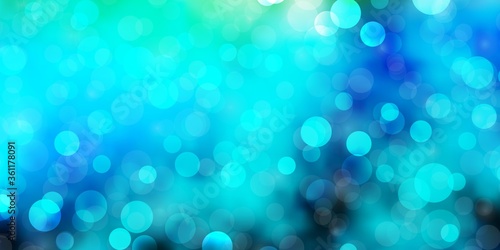 Light Blue, Green vector background with circles. Illustration with set of shining colorful abstract spheres. Pattern for business ads.