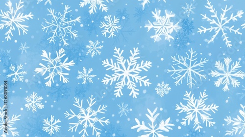 Light Blue Seamless Pattern Featuring White Snowflakes for Winter Holiday Background