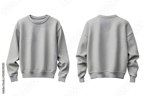 Light gray crew neck sweater front and back mock up with minimalist design and smooth texture isolated on transparent background