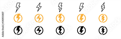 Lightning bolt icon set. Thunderbolt in the circle, flash electric symbol. Thunderbolt flat style sign. Vector illustration