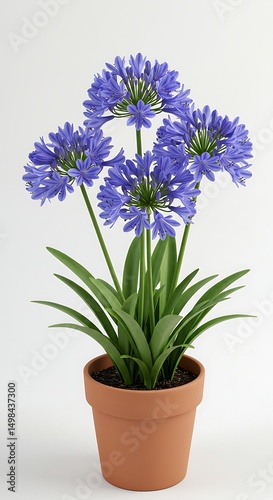flower, plant, pot, blue, purple, green, leaf, flower petals, blossom, bloom, clay, vase, flora, floral, container, home, decoration, decorative, garden, gardening, potted, indoor, botany, botanical, nature, closeup, tabletop, still life, light, growth, detail, studio, simple, blank, clean, background, houseplant, lily, springtime, growing, beautiful, fresh, elegant, minimal, vibrant, bright, interior, natural