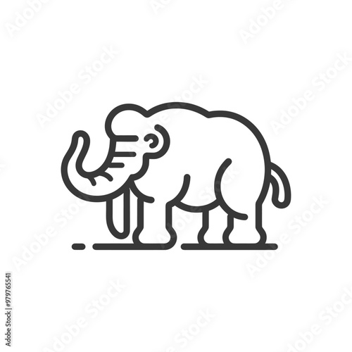 mammoth, woolly, prehistoric, extinct, animal, creature, ice, age, tusk, trunk, leg, foot, tail, outline, line, art, illustration, black, white, simple, icon, symbol, design, graphic, isolated
