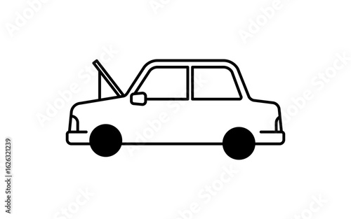 sedan, car, vehicle, hood, engine, inspection, maintenance, repair, icon, simple, cute, illustration, vector, line art, isolated, equipment