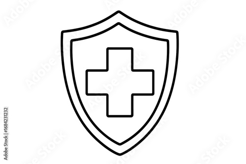 medicals, cross, shield, health, protection, safety, health care, icon, emblem, vector, line art, illustration, graphic design, medicine, first aid, hospital, security, defense, care, concept, cartoon, set, linear, symbol, emergency, health care