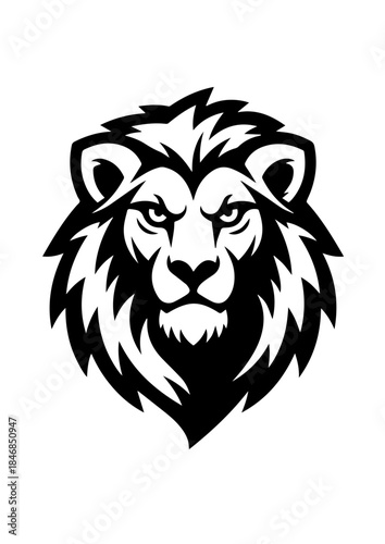 Lion Face Portrait in Black and White Background with Strong Contrast and Detailed Animal Expression