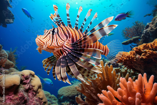 Lionfish (Pterois miles) on a coral reef