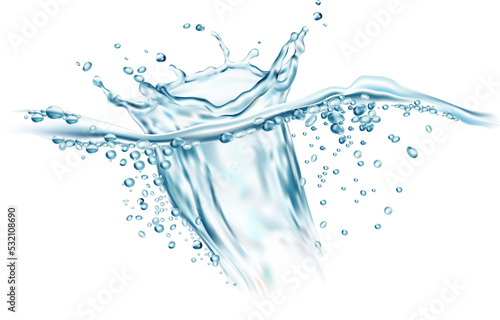liquid, water, splash, wave, swirl, dripped, vector, splashing, water, crown, drink, realistic, three-dimensional, shape, dynamic, motion, element, spray, droplet, hydratation, advertisement, design, pure, fresh, beverage, surface, ocean, nature, clean, ecology, clear, purity, rain, advertising, health, melting, refreshing, pouring, falling, side, view, transparent, blue, isolated, white, background