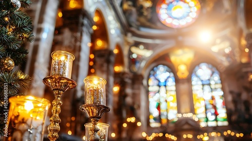 light, candle, gold, festive, decoration, church, building, interior, ornate, glasses, flames, warm, bright, glow, elegant, luxury, traditional, celebration, religion, spirituality, faith, holy, sanctuary, christmas, evergreen, garland, ornament, bokeh, blurred, background, arch, ceiling, detail, pillar, structure, architecture, design, illumination, prayer, hope, peace, worship, devotion, ambience, history, artistry