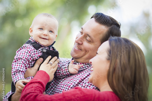 Little Baby Boy Having Fun With Mother and Father Outdoors