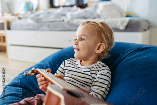 family, guitar, toddler, happy, music, playing, fun, song, smiling, cosy, musician, home, lifestyle, childhood, window, joy, connection, casual attire, candid, real people, playful, weekend, cheerful, carefree, emotion, hugs, warmth, well-being, soft light, copy space, moment, loud, sitting, creative, mental health