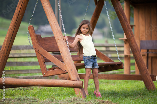 Little girl standing near swinging seat