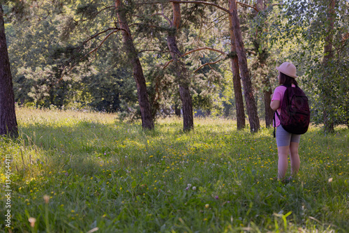 holiday maker, hiking, nature, travel, summer, active, adventure, hike, hiker, caucasian, landscape, trip, young, person, children, girl, trekking, backpack, journey, little, walk, altitude, cliff, hill, lifestyle, tour tourism, climb, destination, bag, road, sightseeing, grass, explore, natural, crossing, day, alone, trek, horizon, sunlight, europa, wood, backpacker, traveler, activity, 1, healthy, enjoying, forest
