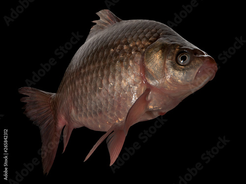 Live fish crucian on black background