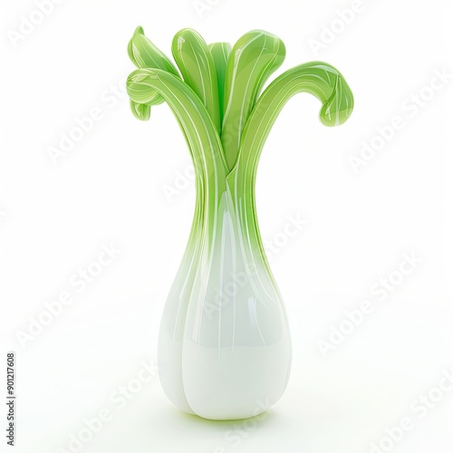 Lively Inflatable Leek Plush Toy in a Whimsical 3D Cartoon Scene, Soft and Rounded Shapes with a Gentle Color Palette on a Pure White Background