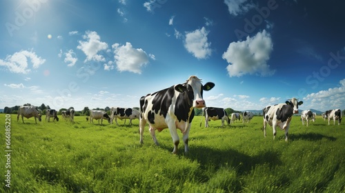 landscaped, ranch, farm animal, production, panoramic, land, mammal, product, farming, panorama, standing, farmland, group, industrial, lush, cow, agricultural, cow, herd, rural, holstein, cattle, farmer, milk, domestic, pasture, dairy, industry, breed, holland, white, graze, grazing, black, sky, animal, beef, grass, green, eating, nature, country, farm, background, natural, summer, countryside, landscape