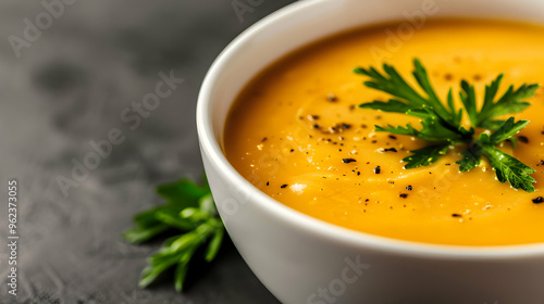 lobster, soup, food, bowl, vegetable, meal, dinner, healthy, tomatoes, white, cream, pumpkin, plate, carrot, hot, vegetarian, lunch, broth, dish, epicure, orange, spoon, fresh, tomato soup, parsley, isolated