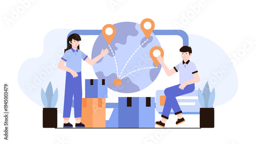import, export, business, concept, flat, design, global, trade, logistic, shipping, international, commerce, transport, delivery, cargo, good, package, box, map, earth, industry, supply, chain, distribution, team, people, warehouse, strategy, growth, market, partner, commercial, service, professional, carrier, freight, forwarding, economy, worldwide, communication, agreements, route, tracking, storage, transit, port, sale, inventory, management