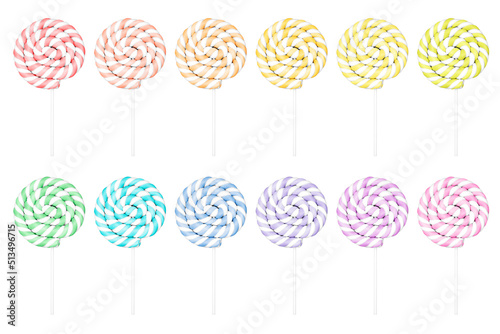 Lollipop spiral shape isolated on white background. Colors theory concept. Colour palette of primary. Secondary and tertiary color.