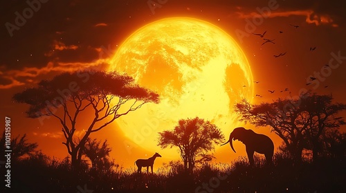 nature, sunset, tree, animal, outdoors, sky, color image, horizontal, photo, silhouette, no people, forest, landscape, dusk, majestic, mammal, wildlife, beauty, sun, peaceful, grass, serene, sunlight, dawn, horizon, environment, illustration, scenic, mountain, winter, calmness, lone, shadow, twilight, evening, tranquil scene, night, dark, red, antler