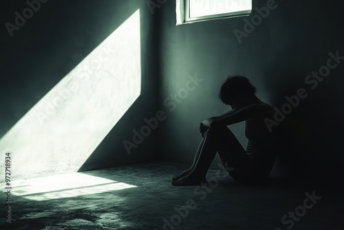 lonely, person, isolation, sorrowful, light, window, solitude, shadow, emotional, depression, introspection, silhouette, quiet, moody, abandoned, empty, minimalist, mental health, despair, contemplation, stark, loneliness, grief, sombre, melancholy, reflective, beam of light, corner, lost, despairing, hopelessness