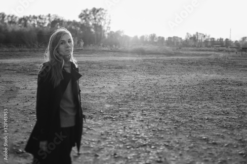 woman, solo, thoughtful, grieved, serious, sorrowful, sad, portrait, pensive, outdoors, monochrome, loneliness, female, fashion, black-and-white, beautiful, badlands, architecture, alone, abandoned, caucasian, white, lady, person, people, adult, adult, 30s, grown-up