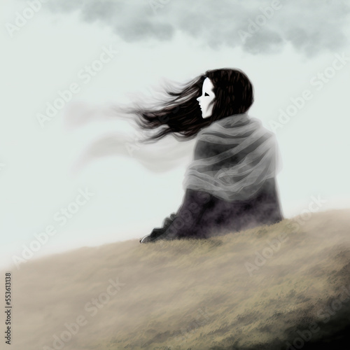woman, fog, smog, foggy, anxiety, depression, lonely, alone, sad, sorrowful, mental health, mental, health, lady, beautiful, grey, white, black, art, artwork, artwork, ai, generated