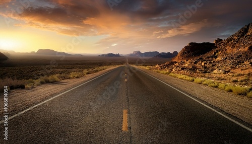 Long asphalt desert road.