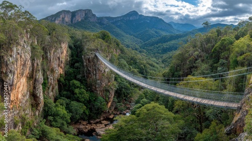 access, alpine, architecture, beautiful, bridge, cable, canyon, construction, crossing, deck, deep, dip, foot, forest, gorge, green, high, landscape, long, mountain, natural, nature, park, path, perspective, plank, ravine, reaching, river, rope, scenic, stretching, support, suspension, travel, walk, wood, wooden, adventure, hiking, sky, cloud, exploration, absence, color image, empty, eroded