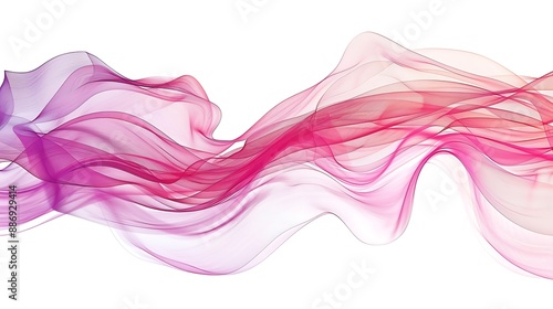 Long view of a fuchsia tidal wave, soft and subtle colors, minimalistic art, isolated on white