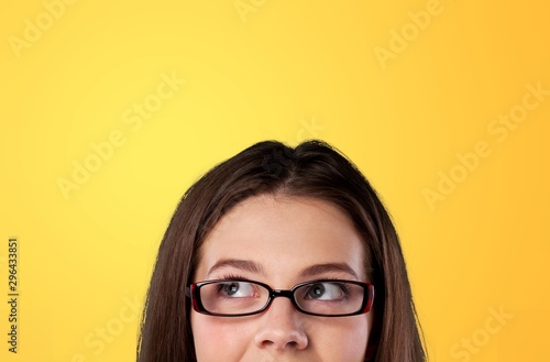 looking, up, concept, girl, like, teenage, up high, believe, brain, business, career, crop, doubt, eyeglass, eye, eyesight, eyewear, face, female, frame, funny, goggles, half, idea, intelligence, looking up, mind, nerd