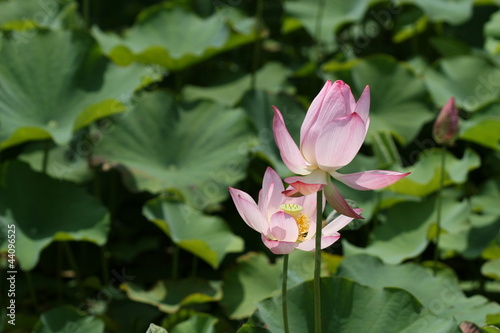lotus, single flower, duck pond, flower, pink, green, water surface, horizontal, water lily, tranquil scene, water, image, color image