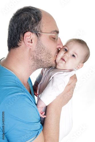 father, fatherhood, eltern, parenting, parenthood, adult, person, people, man, male, children, children, baby, infant, toddler, son, daughter, girl, boy, offspring, young, small, little, cute, attractive, sweet, family, 2, lifestyle, couple, together, play, isolated, cut-out, studio, white, caucasian, european, love, portrait, positive, happy, happiness, cheerful, joyful, enjoy, kiss