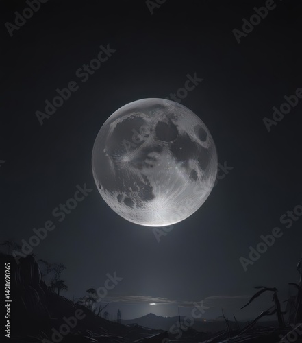 Low-hanging full moon casts eerie glow on dark, starless sky , isolated, silhouette, shadows