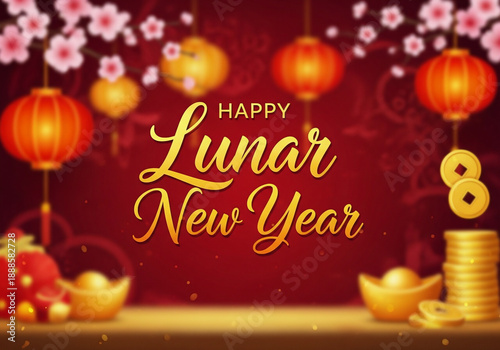 lunar new year, chinese new year, chinese lantern, oriental style, asian culture, chinese culture, greeting card, firecracker, prosperity, good luck, fortune, happiness, illustration, digital illustration