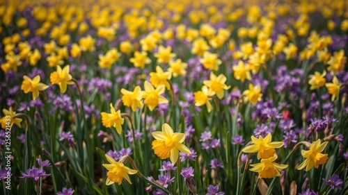 spring, landscape, fresh, bloom, season, flower petals, vibrant, outdoors, field, yellow, sunny, beauty, nature, flower, daffodil, flora, growth, meadow