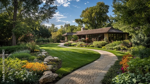 garden, pathway, flower, landscape, greenery, home, plant, scenery, nature, peaceful, sunlight, blossom, yard, colourful, stone, lawn, tree, shrub, botanical, relaxation, high-coloured, summer, beautiful, tranquil, architecture, vibrant, clear, inviting, residential, scenic, lush, harmony, outdoors, natural, blooming, serene, idylli, cheerful, picturesque, environment, bright, garden design, space, rural, seasonal, wellness, enjoyment
