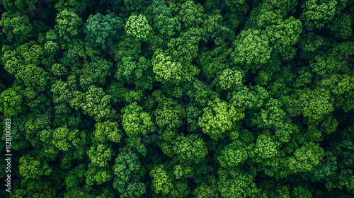Lush green forest canopy viewed from above reveals vibrant tree diversity