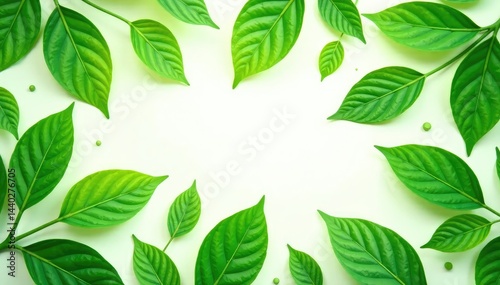 Lush green leaves scattered on a white background, nature, plants, tree