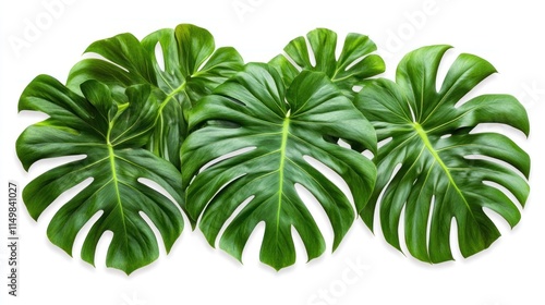 Lush green monstera leaves isolated on white.