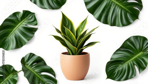 Lush Green Plant in Modern Pot with Bright Leaves on White Background for Home Decor