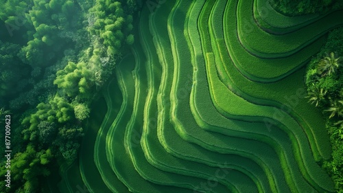 terraced, rice, field, green, lush, aerial, view, nature, forest, sunlight, landscape, agriculture, layer, panoramic, vibrant, terrain, beautiful, organised, meandering, countryside, sunny, growth, hill, farming, natural, fresh, eco, environment, serene, peaceful, organic, textured, verdant, tropical, harvest, arable, sustainable, abundant, field, earthy, tranquil, foliage, botanical, greenery, picturesque, geometric, rural