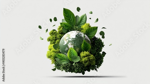 Lush greenery envelops a globe, symbolizing environmental preservation and growth