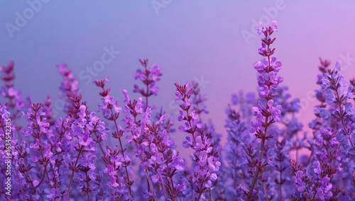 Lush lavender field bathed in soft, pastel light