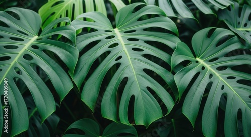 Lush Monstera Deliciosa Leaves: A Tropical Green Paradise Close-Up