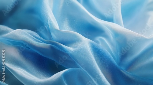 Luxurious close-up of flowing blue silk fabric showcasing soft folds and shimmering highlights, perfect for elegant designs or textiles