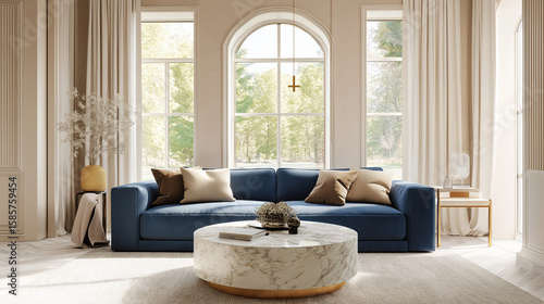 living room, interior design, luxury home, home decor, furniture, sofa, natural light, sunlight, tree, landscape, elegant, sophisticated, calm, serene, peaceful, cosy, comfortable, roomy, bright, airy, minimalist, stylish, upscale, high-end, background, wallpaper, advertisement, branding, beige, cream