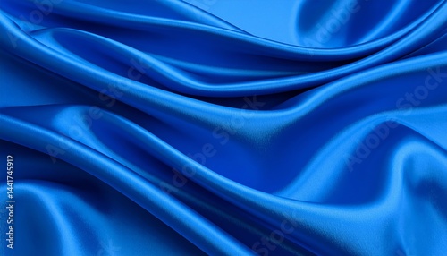 Luxurious Royal Blue Satin Fabric Draped Softly Elegant Texture Background