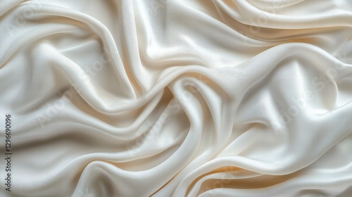Luxurious white silk fabric flowing gracefully over a surface highlighting its smooth and soft texture