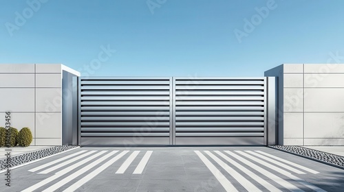 automatic, stainless, steel, gate, property, hardware, privacy, safety, luxury, security, seamless, sheet, metal, custom, stylish, motorize, commercial, automaton, remote, construction, access, framework, system, feature, robust, hard-wearing, sensor, entrance, landscape, computer keyboard